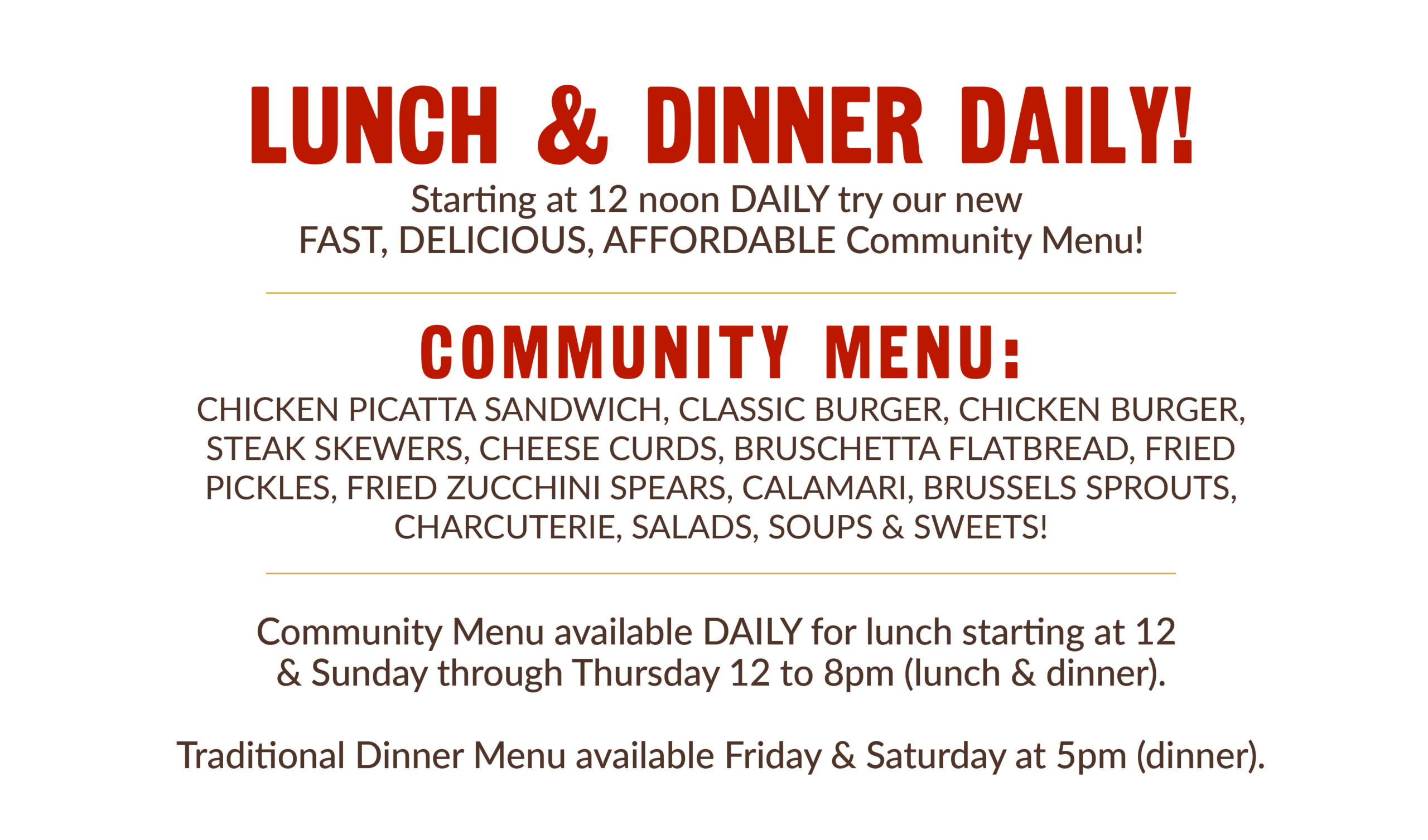 Community Menu: Sun – Thurs